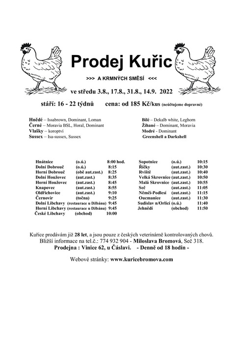 Úvod > Služby > Inzerce > Prodej kuřic