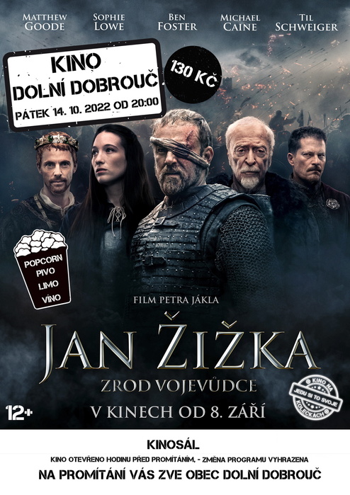 Obec Dolní Dobrouč a Kino na kolečkách vás zvou na historický film Jan Žižka. V pátek 14. 10. 2022 od 20 hod. v kinosálu Dolní Dobrouč. Vstupné 130,- Kč, občerstvení zajištěno.